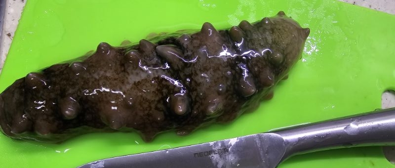 - 해삼 한쪽 부분은 입이고 다른 한쪽 부분은 항문인데 그 부분을 조금씩 잘라내줍니다.